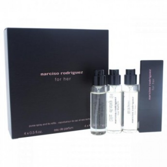 Narciso Rodriguez Miniature Set By Narciso Rodriguez For Women - 5 Pc Mini Gift Set 4 X 0.5oz Edp Spray (refills), Purse Spray\ \ \ \ This floral woody musk fragrance has a blend of exotic woods, patchouli, and sandalwood. It is recommended for casual wear and long lasting fragrance.